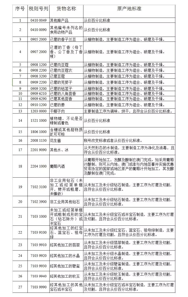根据《关于建立更紧密经贸关系的安排》(即CEPA协议),自7月1日起新增香港、澳门享受零关税货物原产地标准,并对部分享受货物贸易优惠措施的香港、澳门货物原产地标准进行了修改。多种港澳好货实现进口零关税。